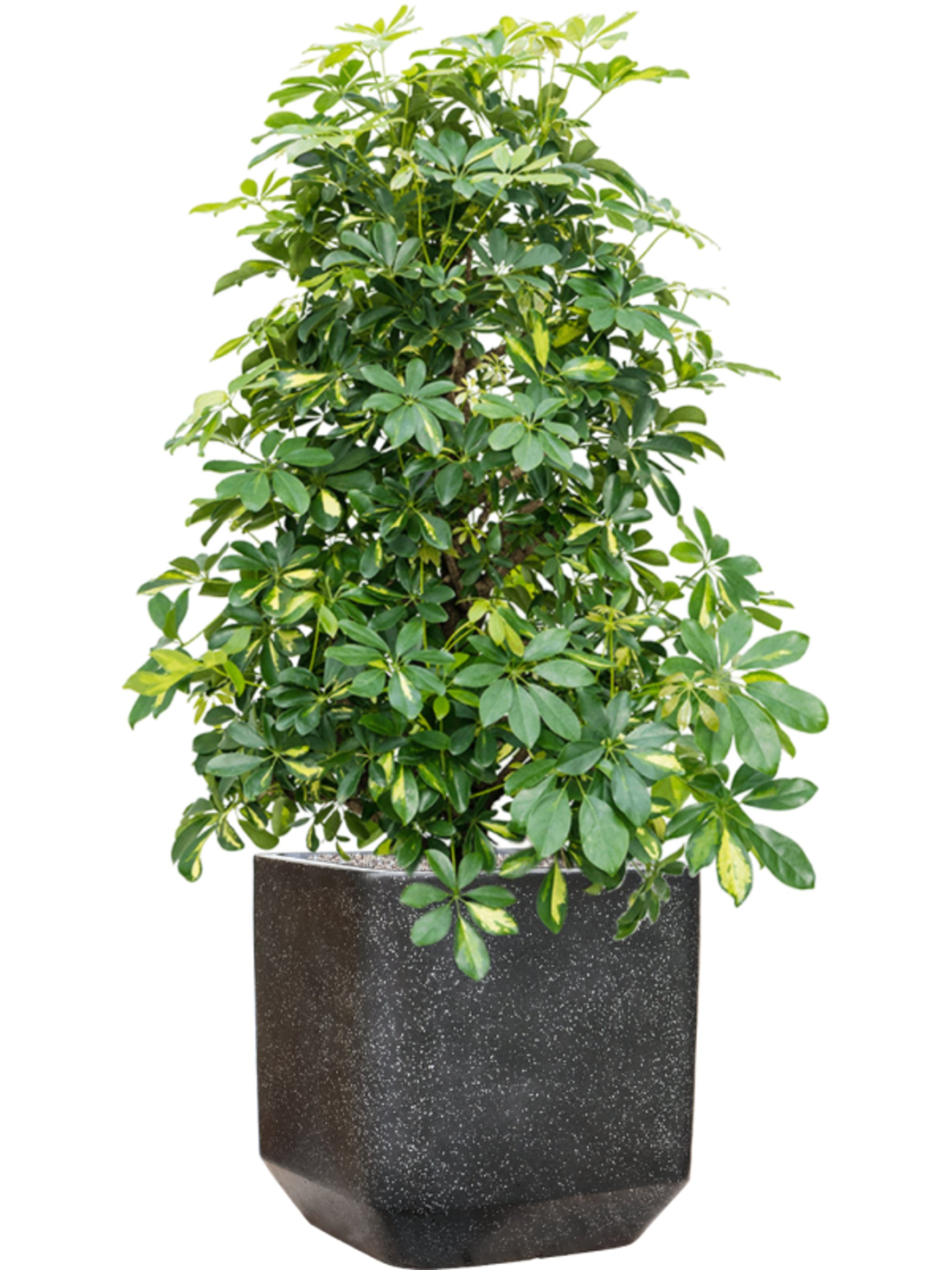 Schefflera arboricola 'Gold Capella' in Baq Terrazzo Grond (Vulkastrat)